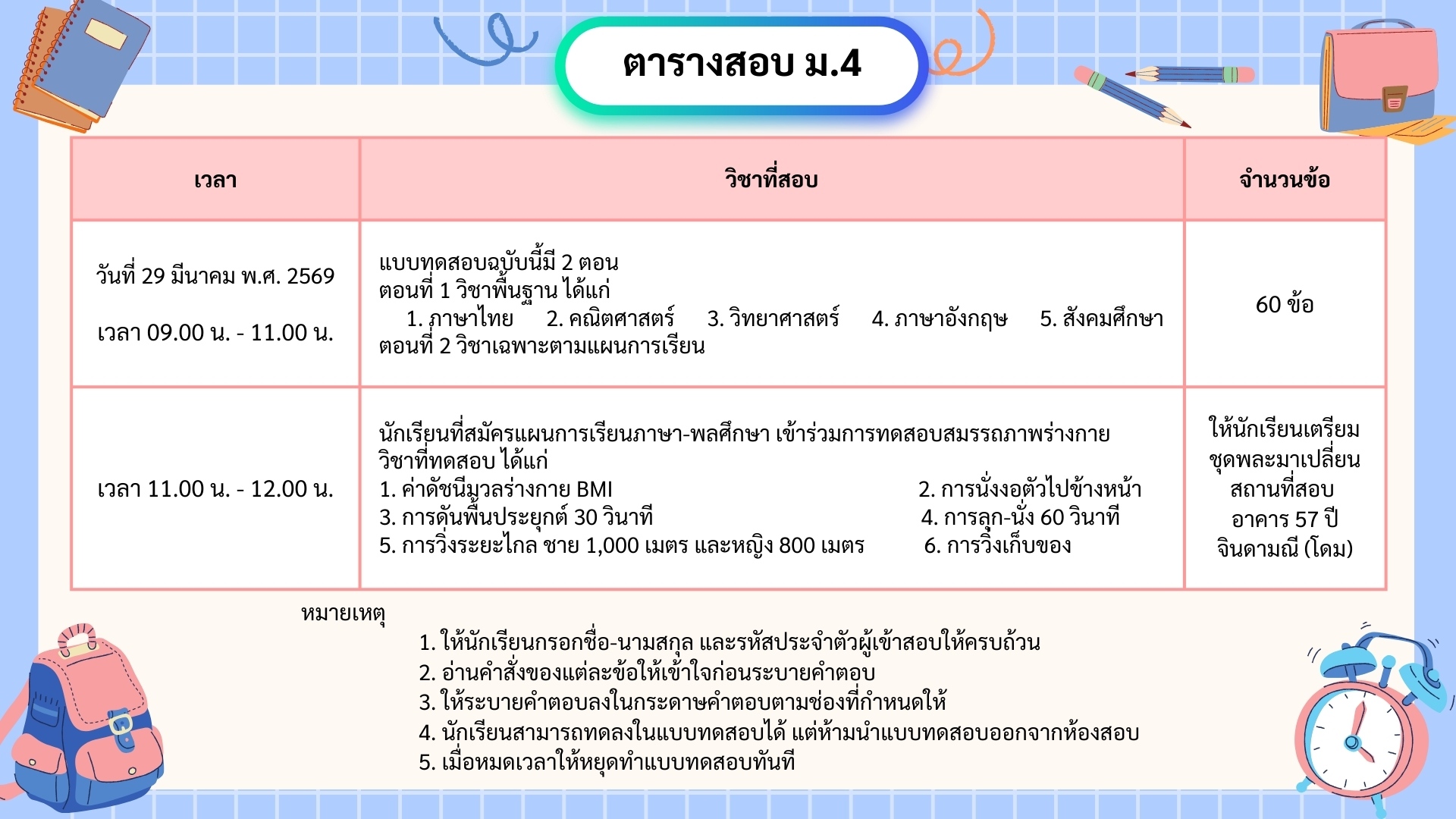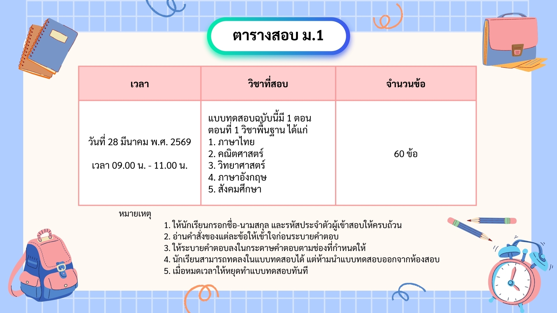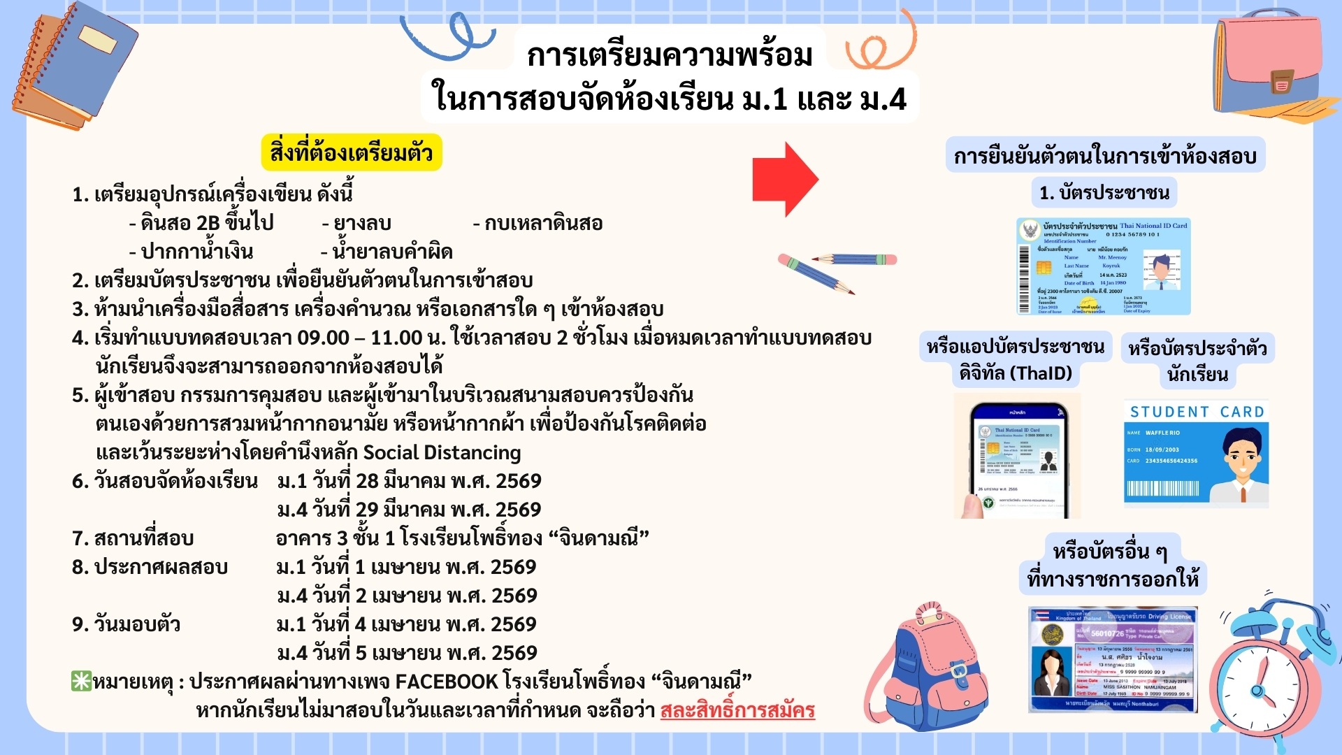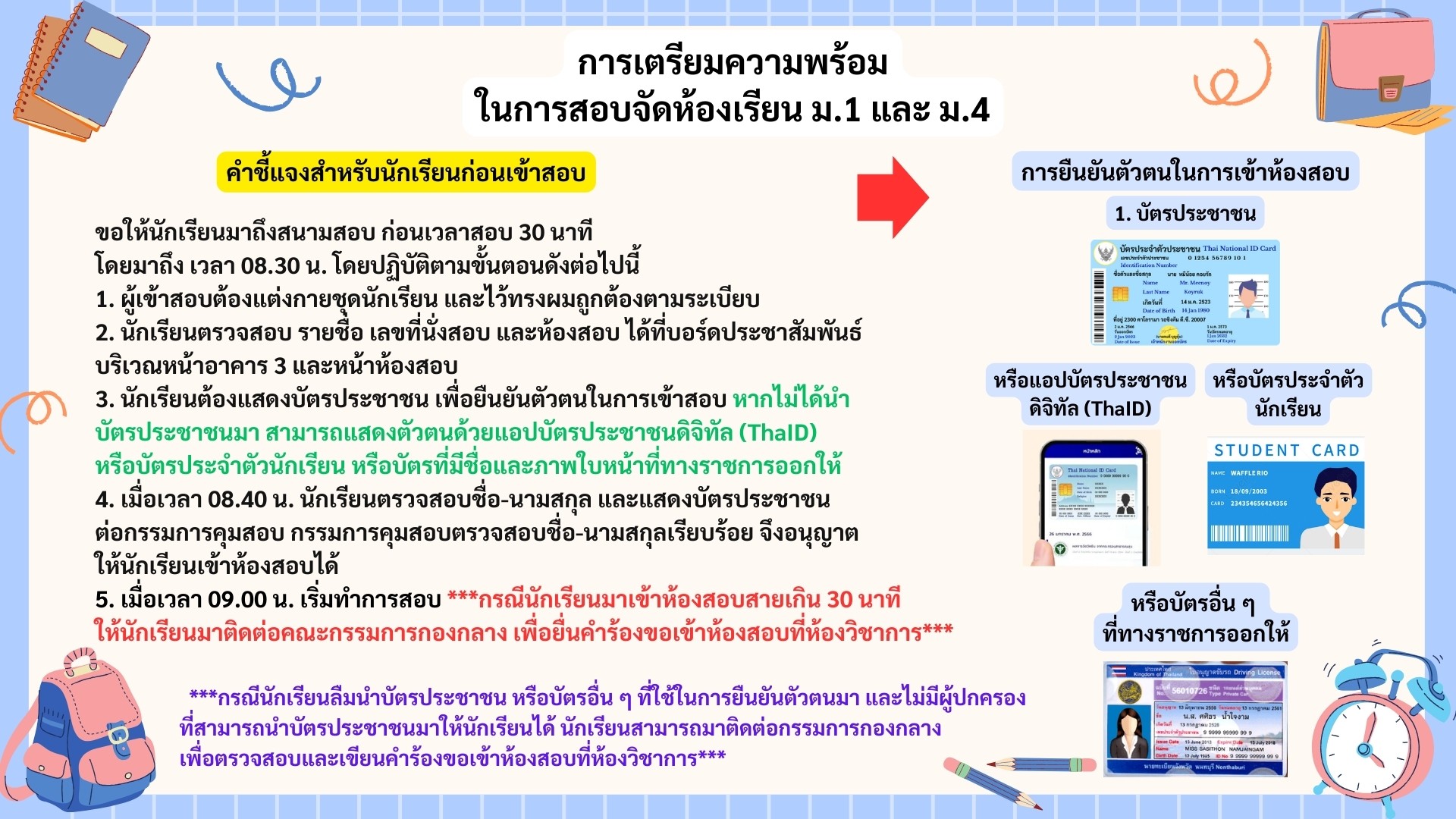 การเตรียมความพร้อมในการสอบจัดห้องเรียน ม.1 และ ม.4 ปีการศึกษา 2569