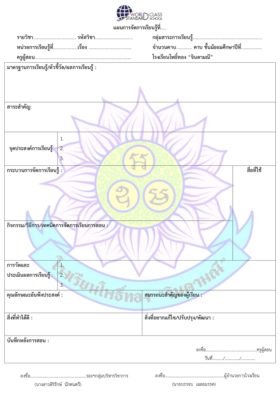 แบบฟอร์มแผนการจัดการเรียนรู้รายคาบ หน้าเดียว