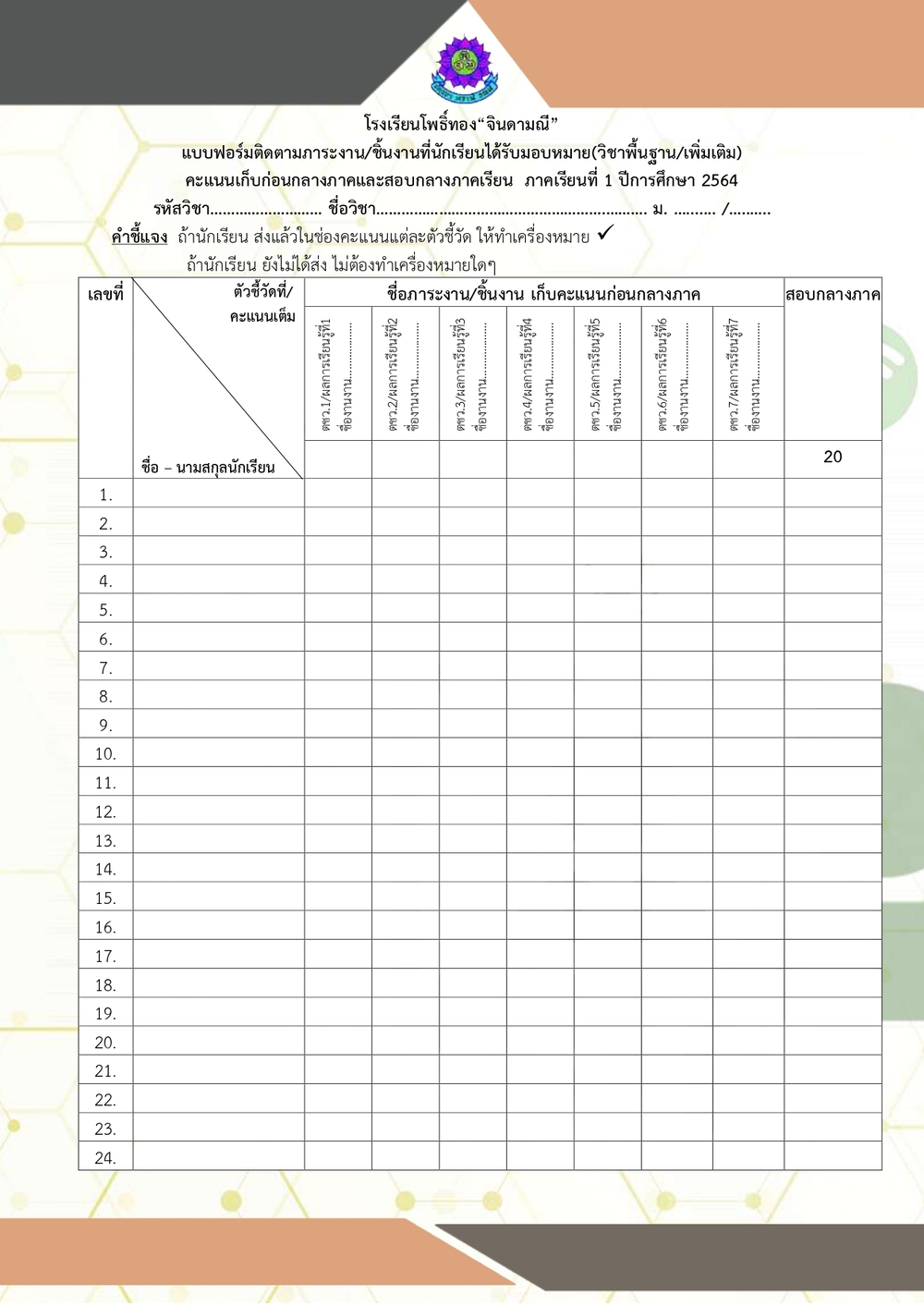 แบบฟอร์มติดตามภาระงาน ชิ้นงานที่นักเรียนได้รับมอบหมาย