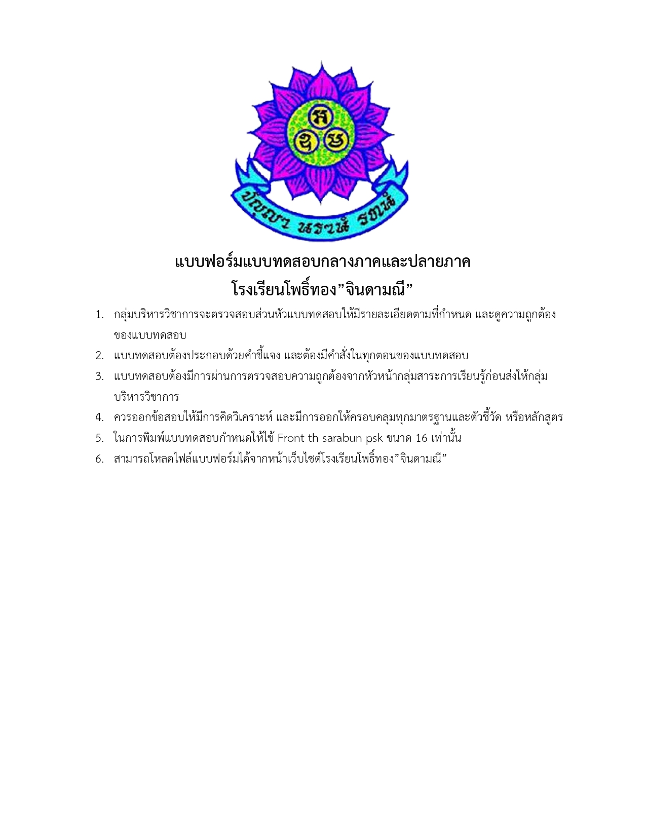 แบบฟอร์มแบบทดสอบกลางภาค/ปลายภาค วิชาพื้นฐานและวิชาเพิ่มเติม